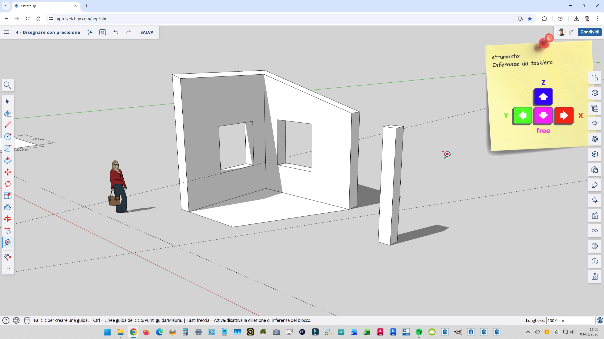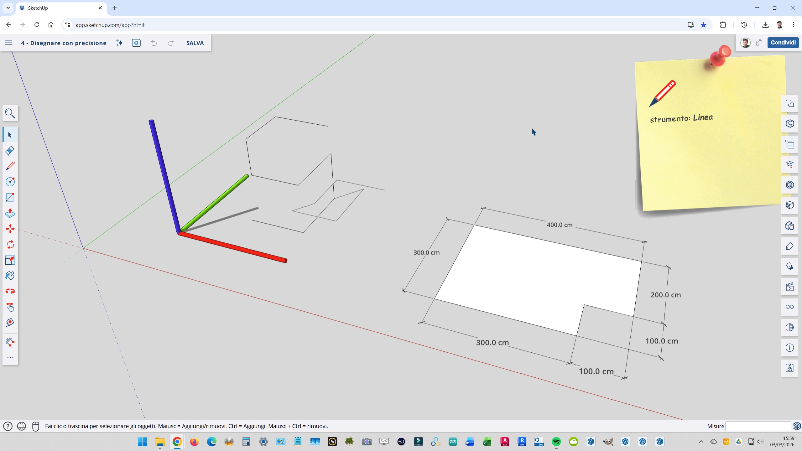 Vuoi imparare a progettare in 3D senza installare software? Questo videocorso ti guida passo dopo passo nell'universo di SketchUp Online (versioni Free, for Schools e Go). Dalle basi del disegno alla modellazione 3D, fino alla stampa in scala